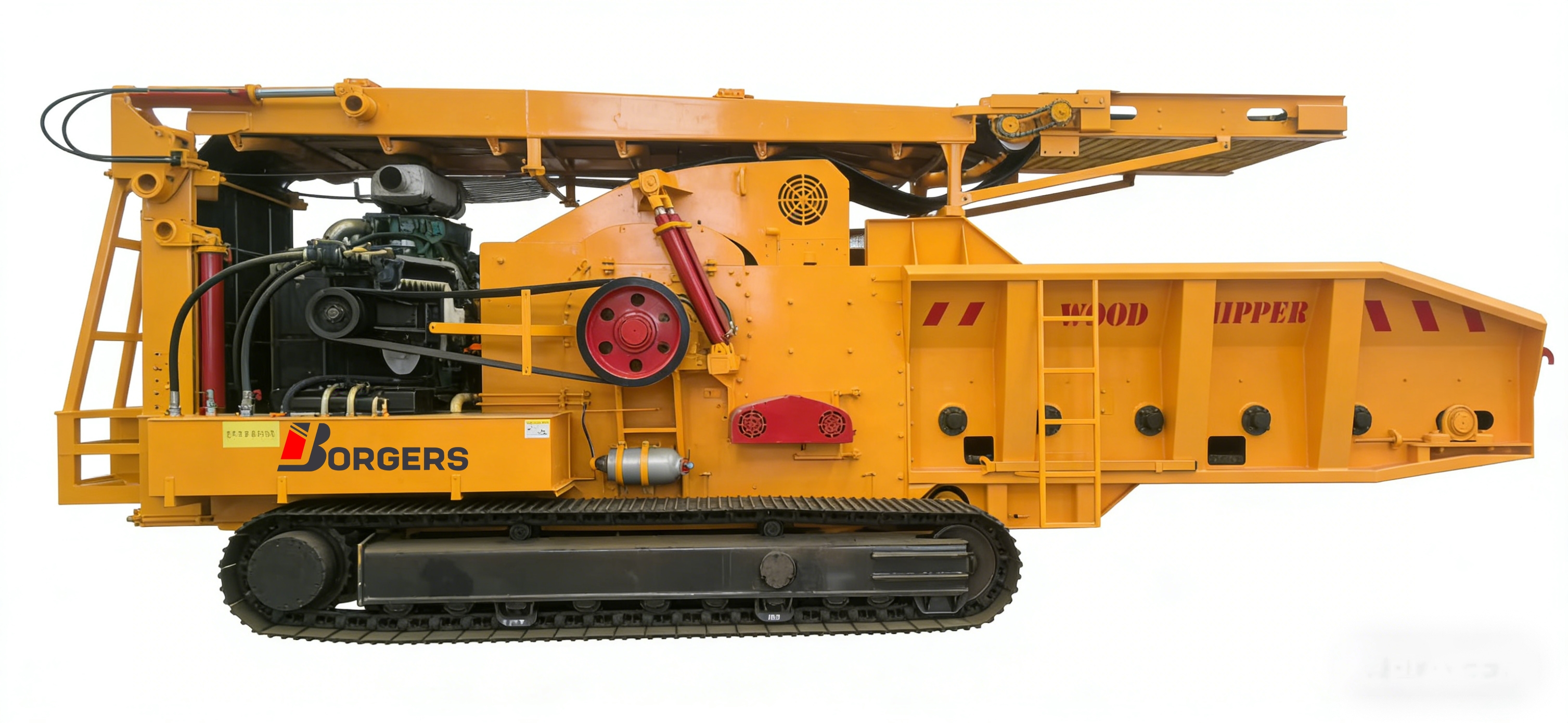 Full hydraulic tracked mobile wood crusher for biomass power plants, particle board factories, paper mills and pellet plants. It can crush wood logs, branches, wood waste, bamboo, straw and other biomass materials with high efficiency and stability.